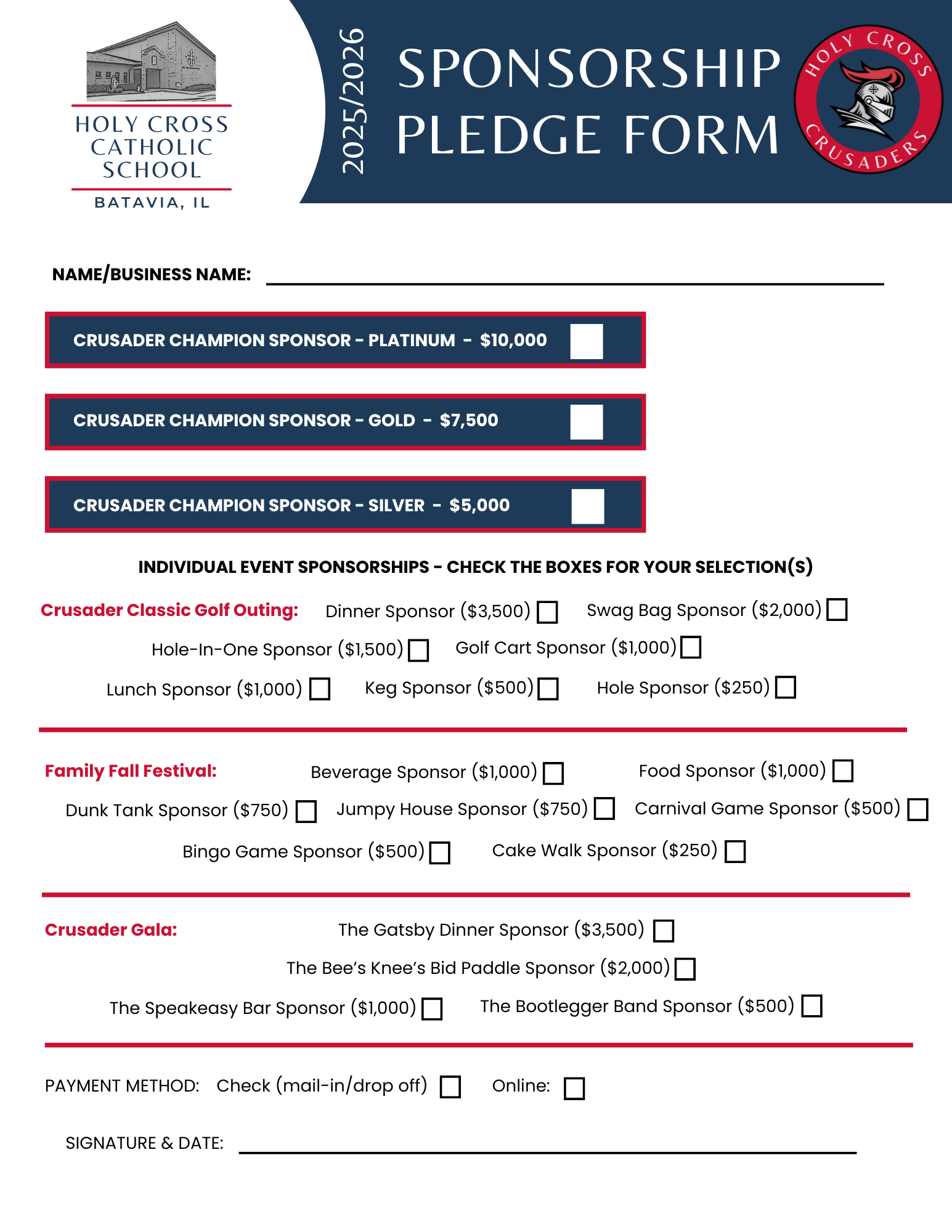 The Holy Cross Catholic School Fundraising Program helps us fulfill our mission of providing an extraordinary Catholic faith foundation alongside academic excellence. While tuition accounts for approximately 76% of our operating costs, the remaining expenses are covered by generous donations, grants, and fundraising efforts. To make giving more straightforward and more impactful, we’ve launched the Holy Cross School Annual Fund, which bridges the gap between tuition revenue and the full cost of educating a Crusader. It also funds vital campus upgrades—like refreshed art and music rooms, new HVAC sensors, enhanced playgrounds, improved safety equipment, and renovated restrooms. Our three signature fundraising events for the 2025–26 school year—the Back to School Crusader Classic Golf Outing (August 15), Family Fall Festival (September 13), and Crusader Gala (Spring 2026)—bring our community together in joyful celebration while providing essential support for our students. Every gift makes a difference in their education, environment, and future.